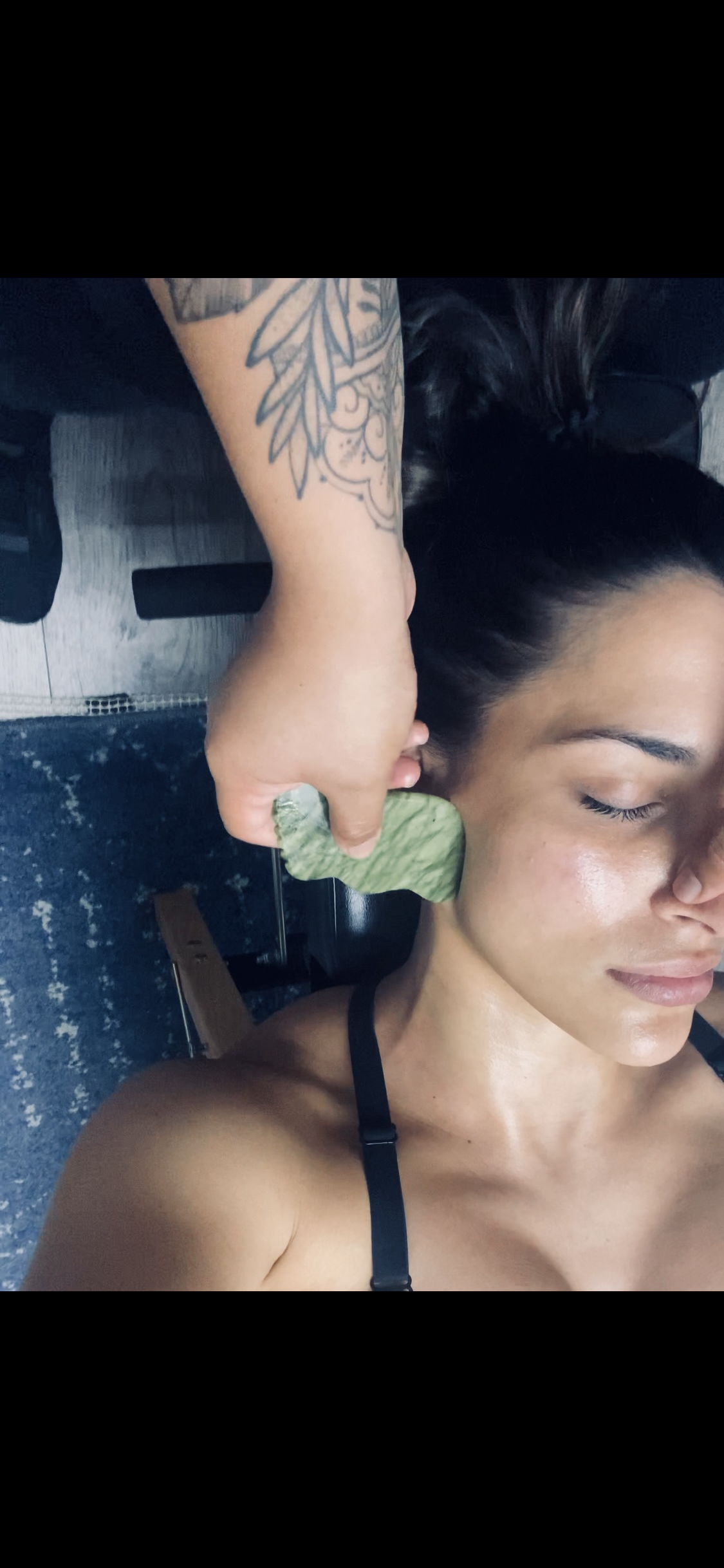 This is a gentle massage using my hands and gua she tools to guide lymph fluid to the facial lymph nodes. Facial lymphatic drainage massage will help reduce puffiness, and swelling, increases collagen production, helps with acne, and is a natural face lift.